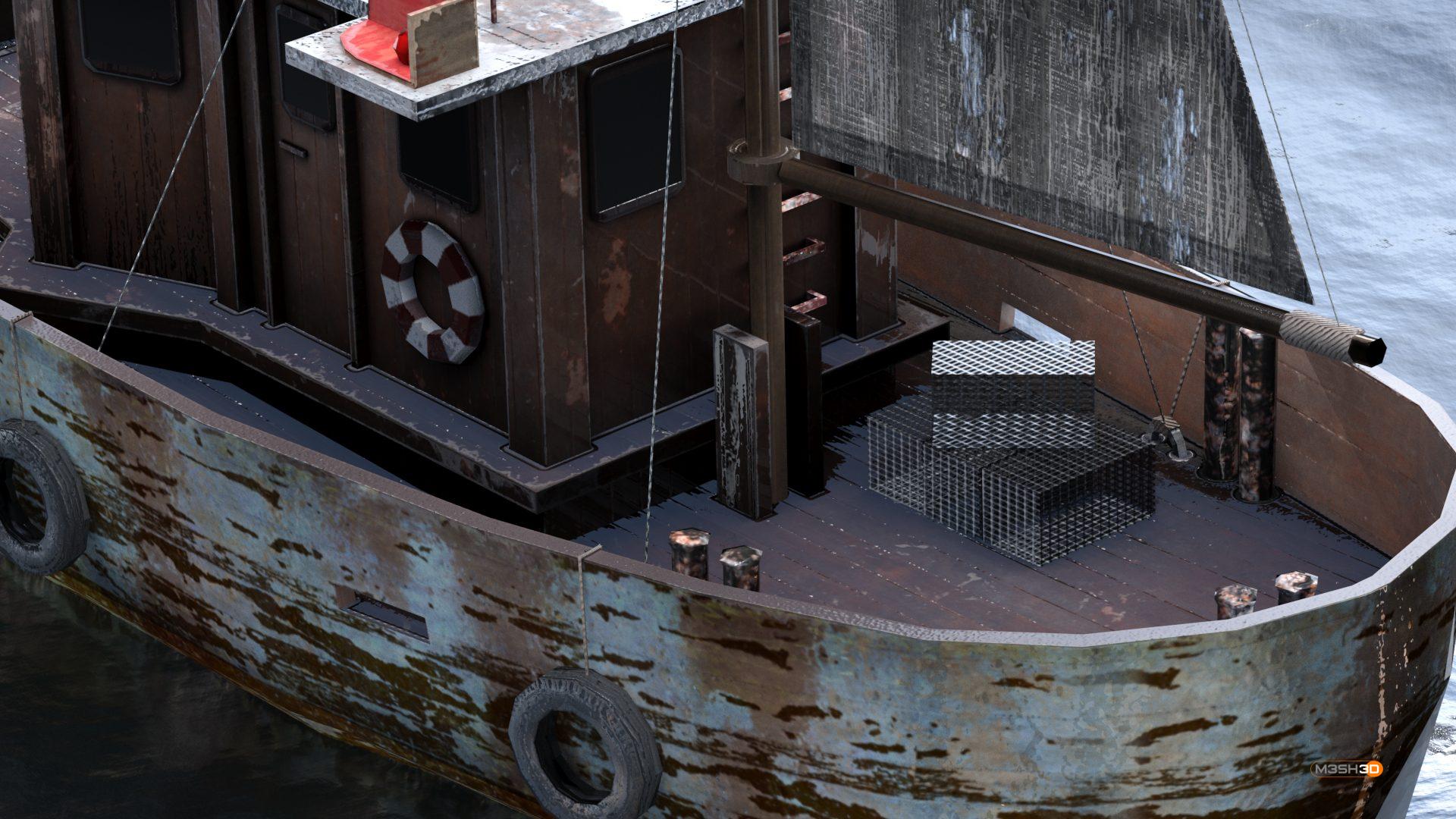 This is a rebuild of my low poly fishing boat. The model is fully textured and comes with a single texture (4096×4096) only. TD (Texel Density) is 128Px/m. No overlapping UVs.